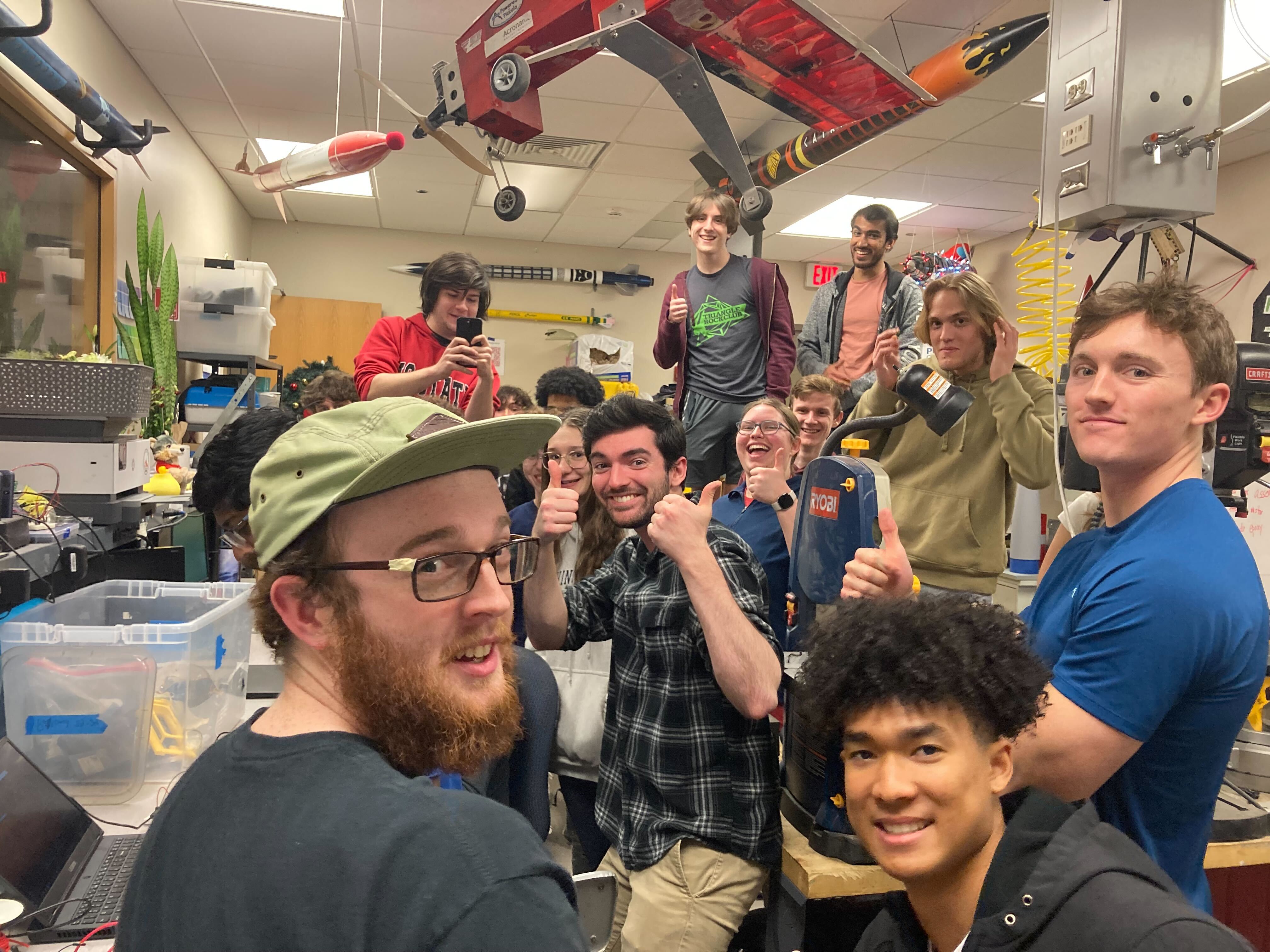 We were founded in 2009 to compete in the NASA Student Launch Challenge, then we expanded in 2013 by partnering with an Aerospace Engineering capstone Senior Design team. This collaboration brought experienced upperclassmen into the club, strengthening our design, build, and testing capabilities while fostering mentorship between graduating seniors and newer members.